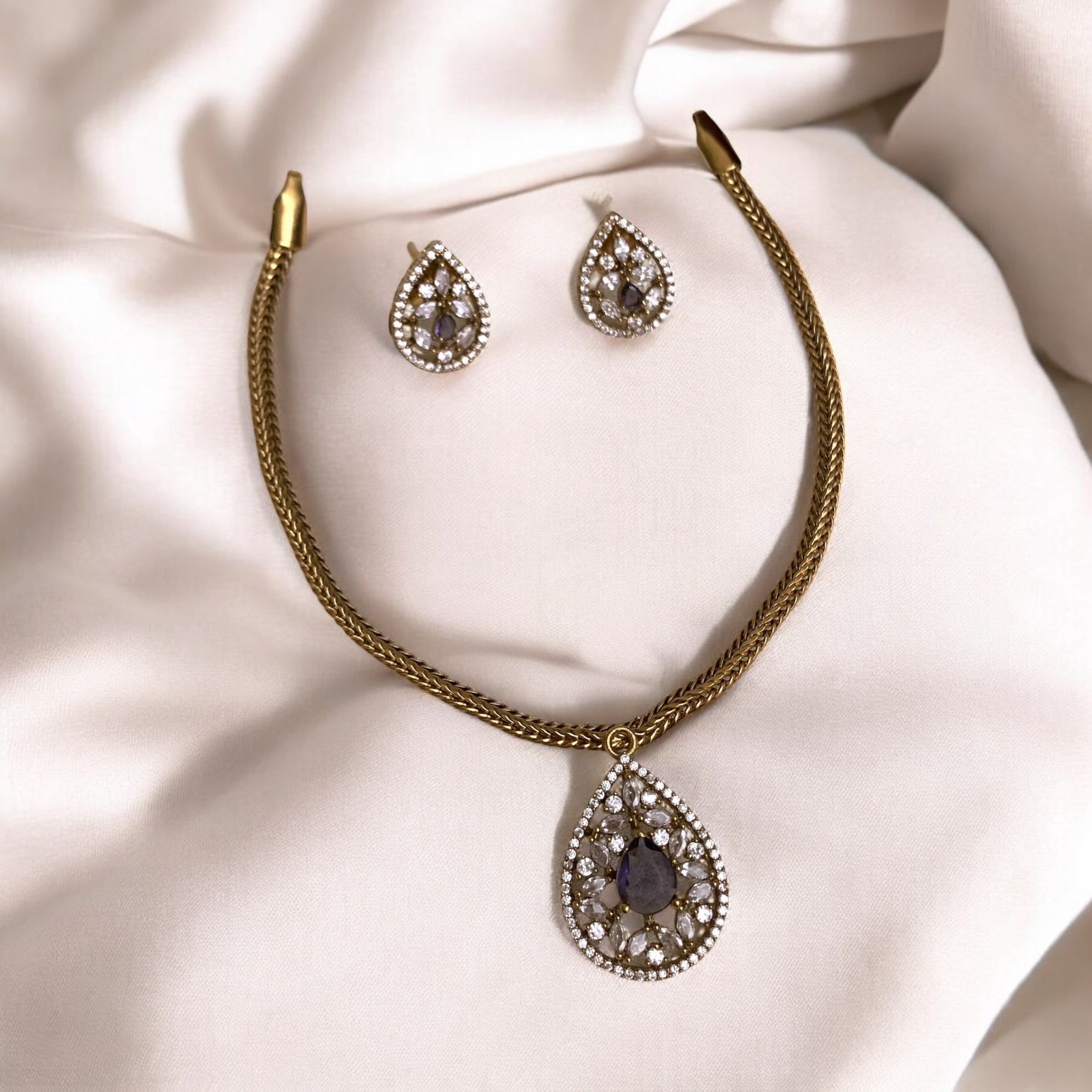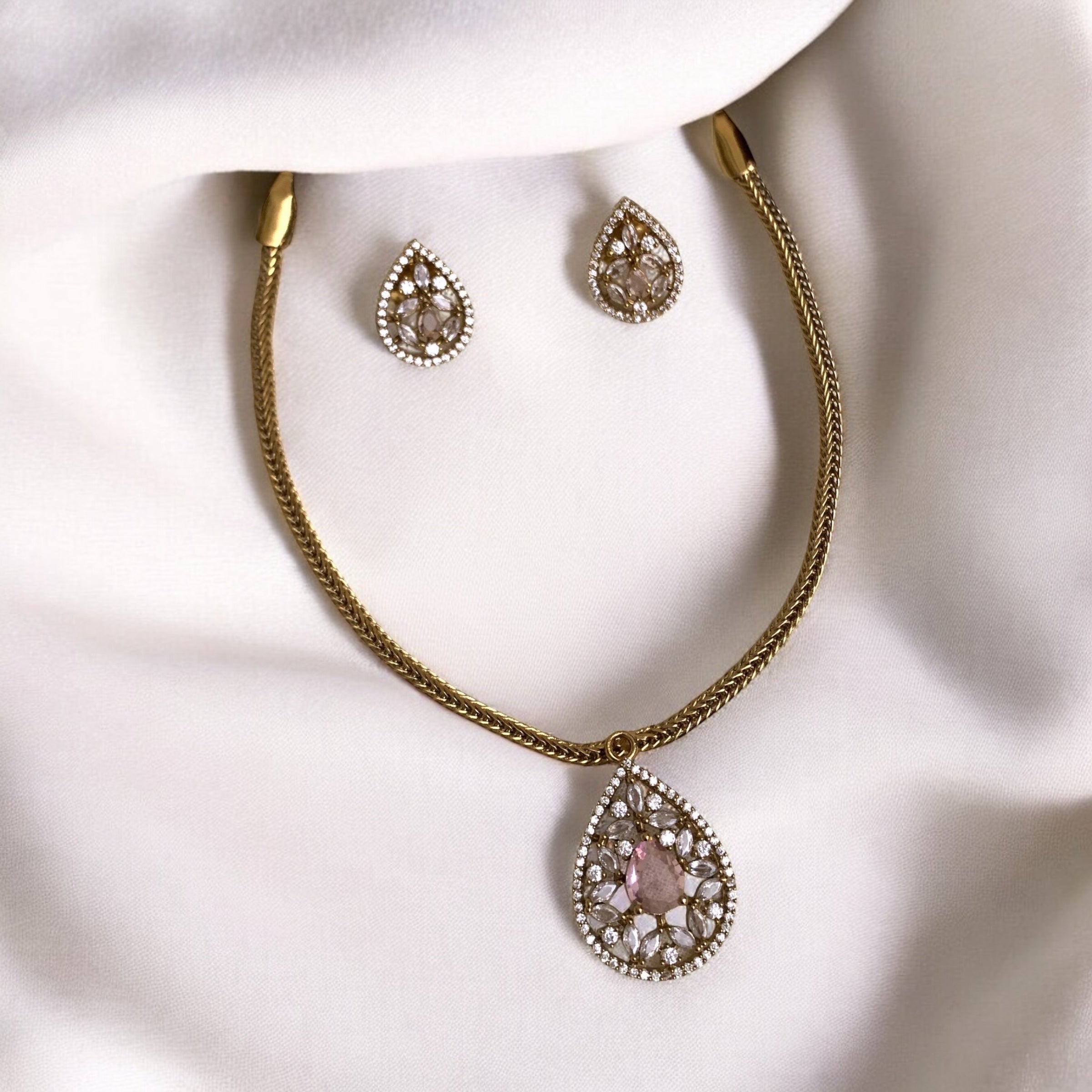 Elevate your elegance with the AD Stud Necklace, expertly crafted to showcase timeless beauty. Featuring meticulously set stones that capture light with every movement, this necklace offers a refined sparkle ideal for both formal occasions and everyday sophistication. Its balanced design ensures comfort while enhancing your neckline, making it a versatile addition to any jewelry collection. Experience the perfect blend of classic craftsmanship and modern style with this exquisite piece.