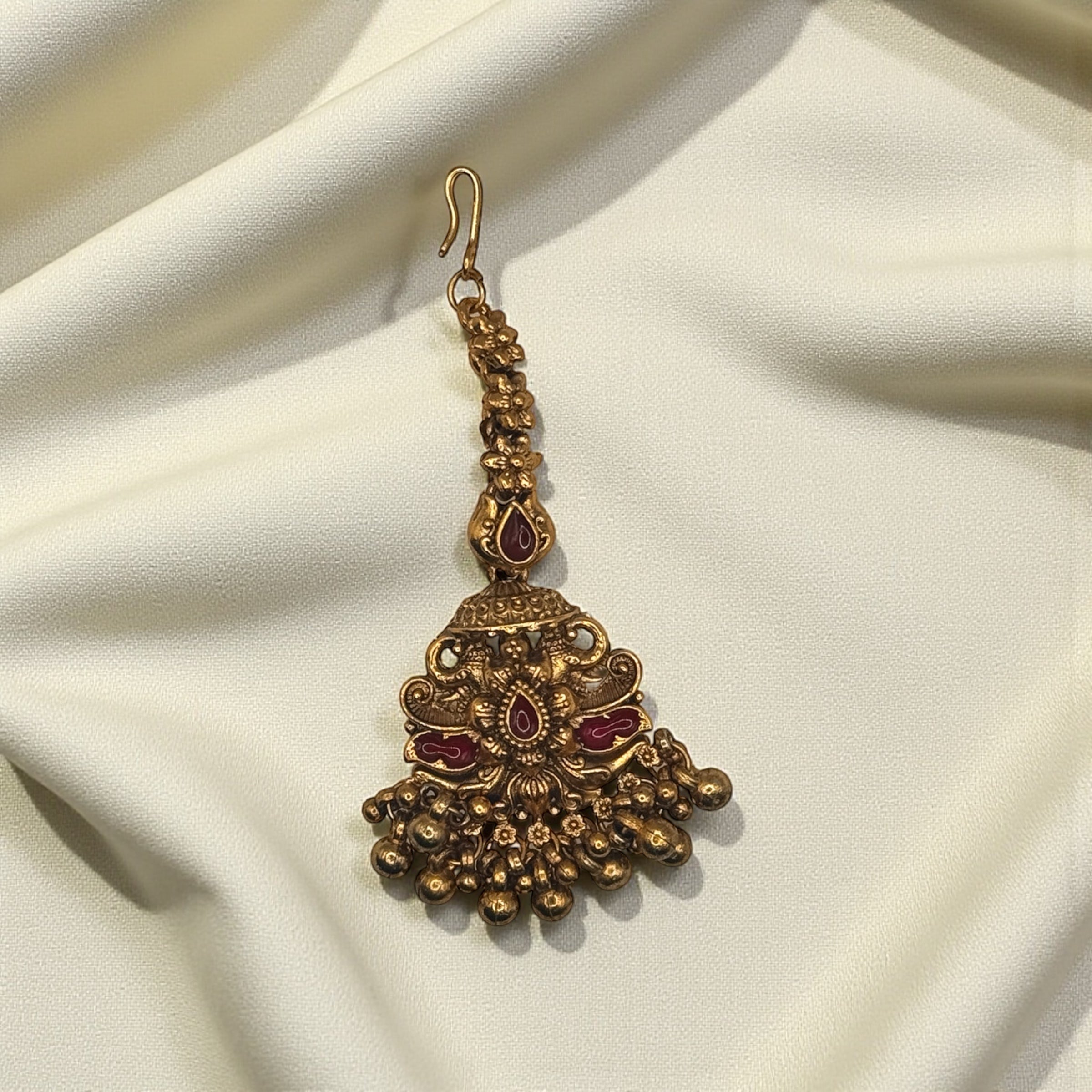 Amaira Mangtikka is a traditional piece of bridal jewelry that embodies timeless elegance and cultural significance. Crafted with meticulous attention to detail, this mangtikka features intricate designs that complement the center parting of the bride's hair. The piece combines precious metals with carefully selected gemstones, creating a harmonious blend of sophistication and tradition. Perfect for weddings and special occasions, Amaira Mangtikka adds an authentic touch to bridal ensembles while celebrating heritage craftsmanship. An investment in jewelry that transcends trends and occasions.