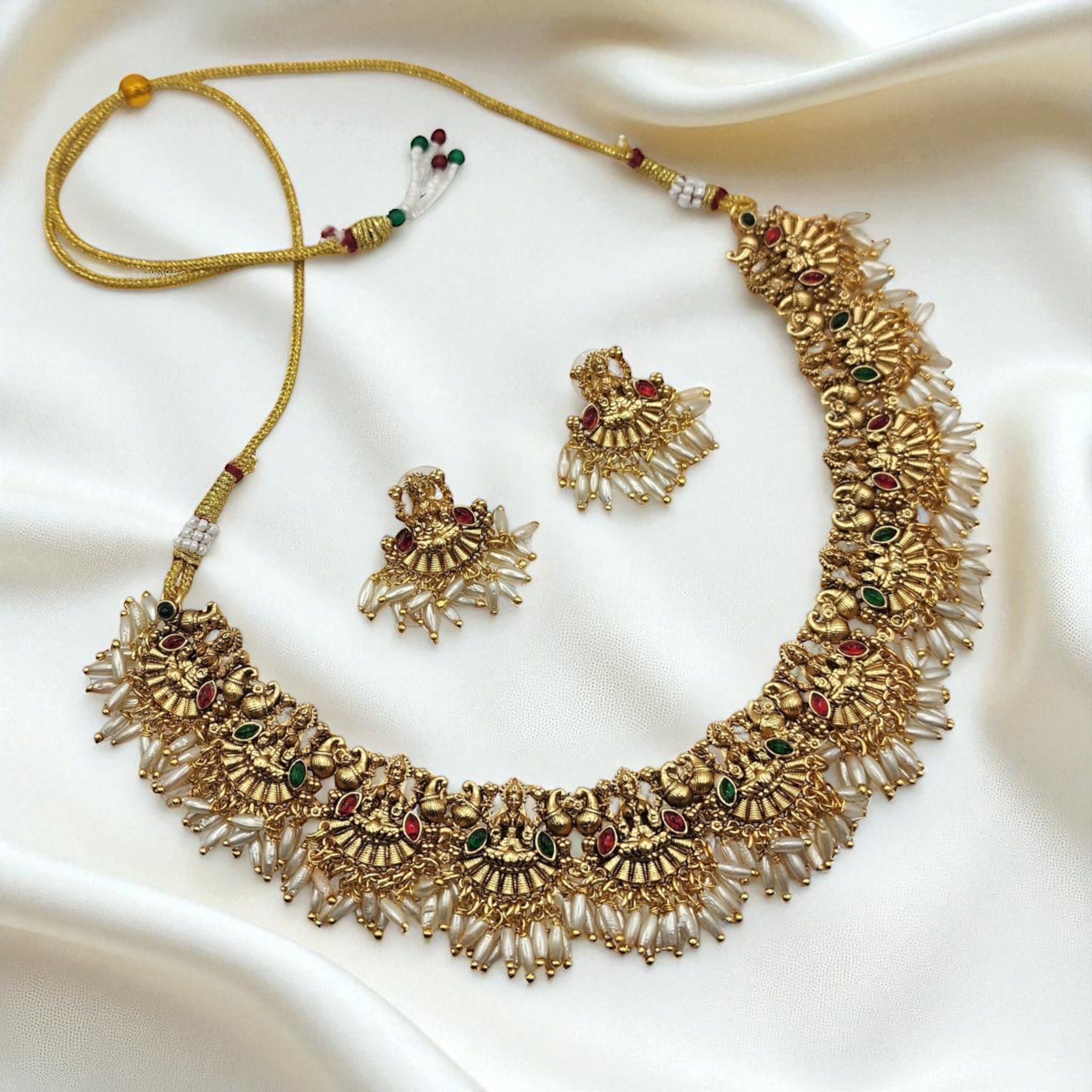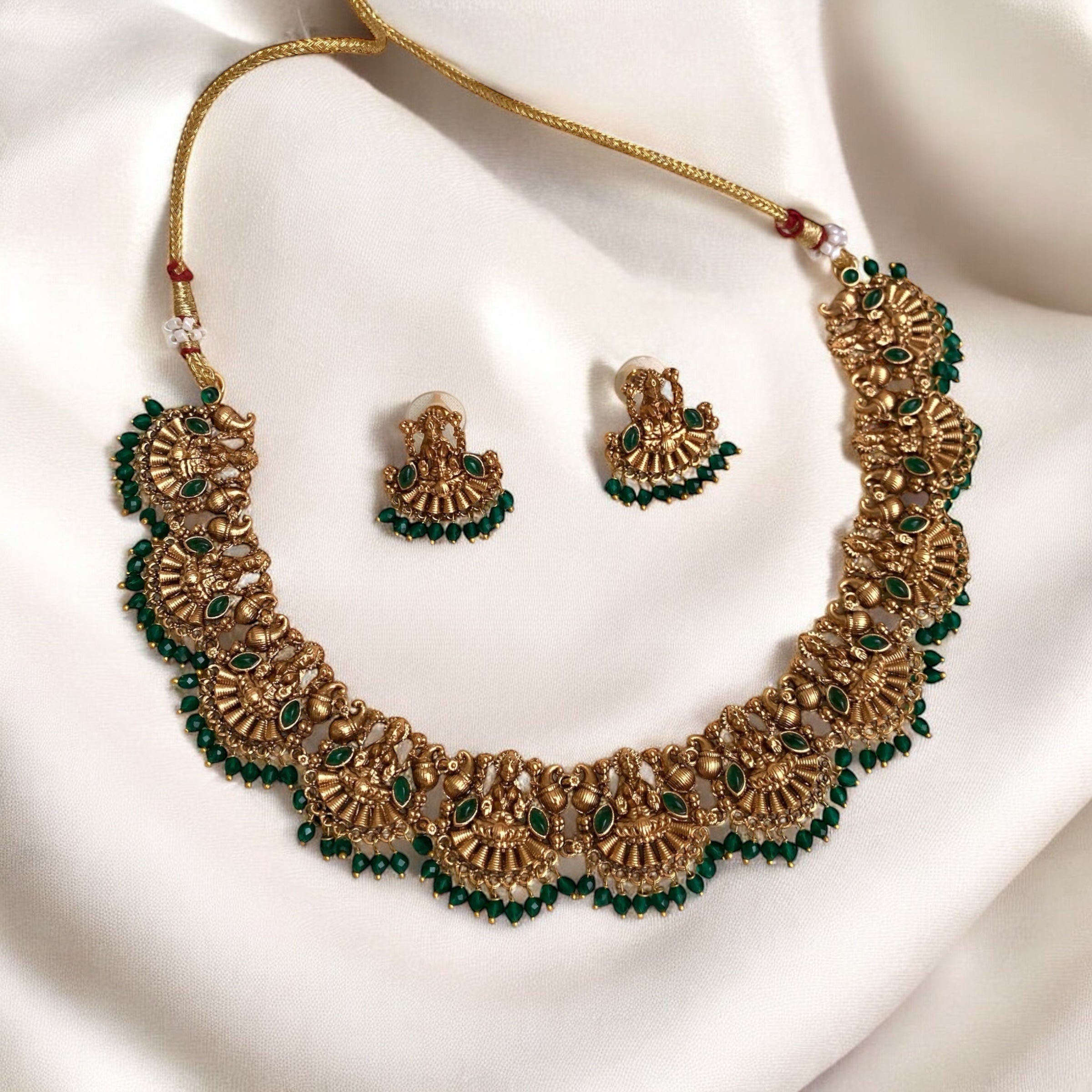 The Devi Grace Necklace embodies refined elegance with its intricate design and superior craftsmanship. Expertly crafted to enhance any ensemble, this necklace offers a timeless appeal that complements both traditional and contemporary styles. Its delicate details and balanced proportions make it a versatile accessory for special occasions or everyday wear, reflecting grace and sophistication in every wear.