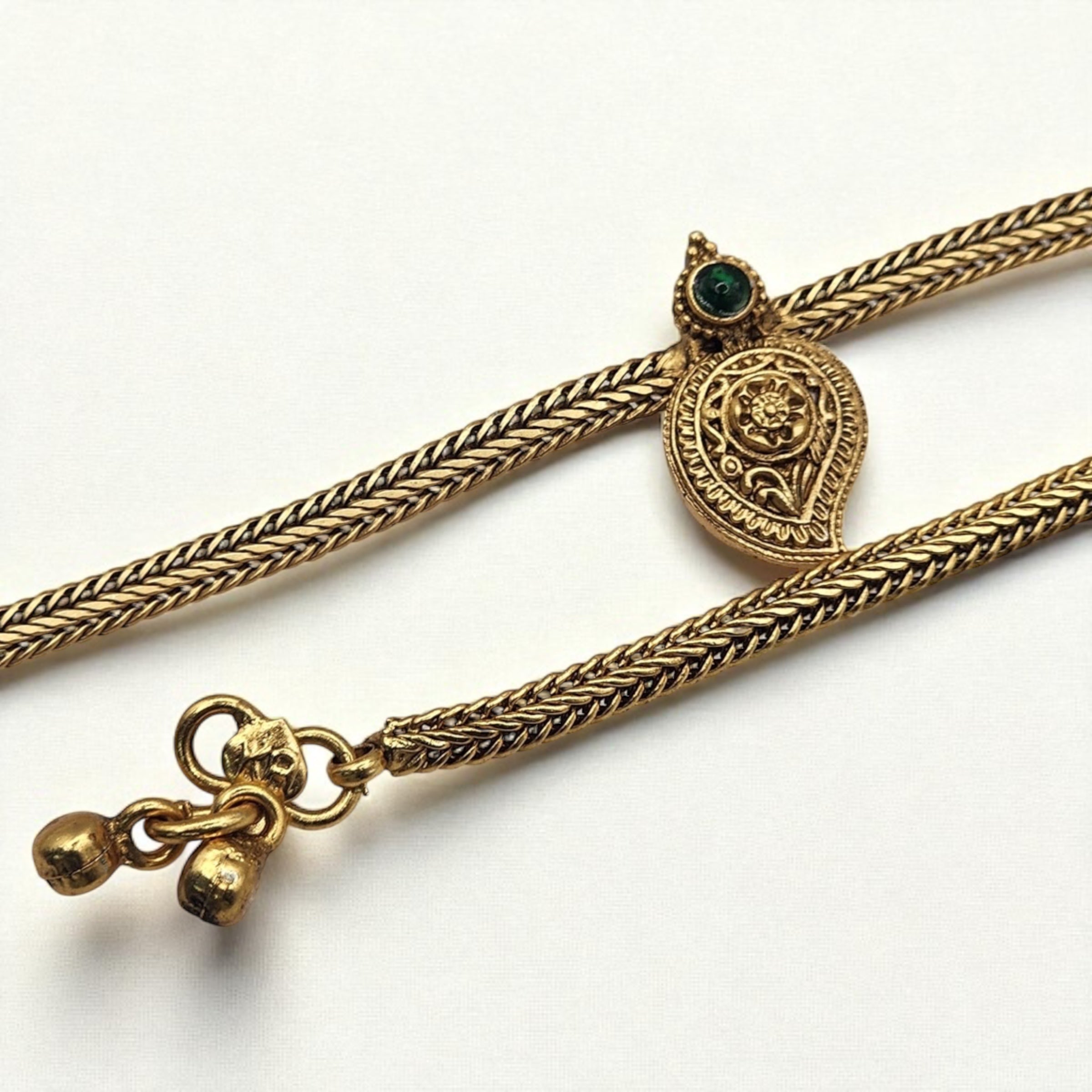 Elevate your traditional jewelry collection with this expertly crafted Kemp Anklet. Featuring intricate designs and vibrant Kemp stones, it offers a perfect blend of cultural heritage and refined elegance. Lightweight yet durable, this anklet ensures comfortable wear for extended periods, making it ideal for festive occasions and daily adornment alike. Its