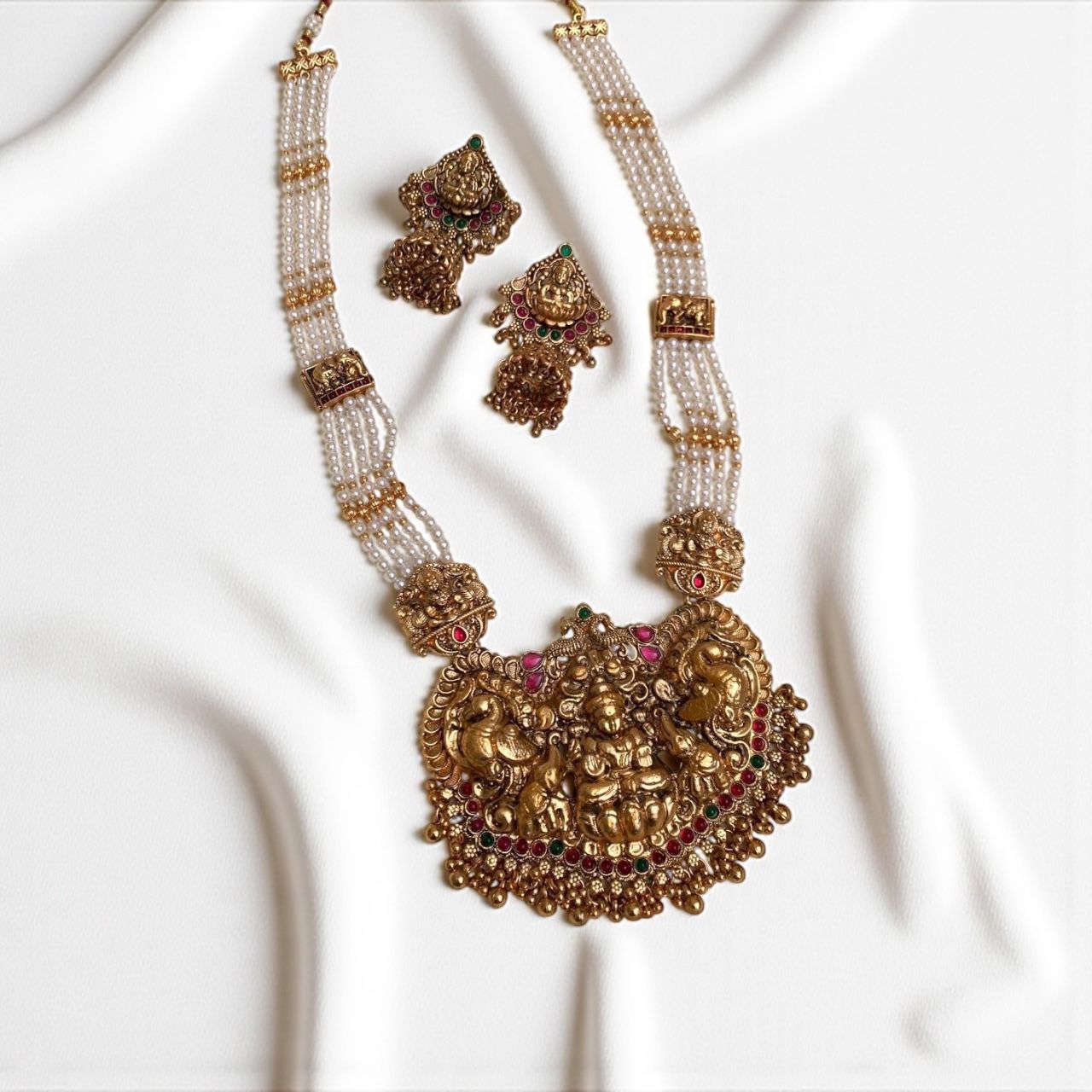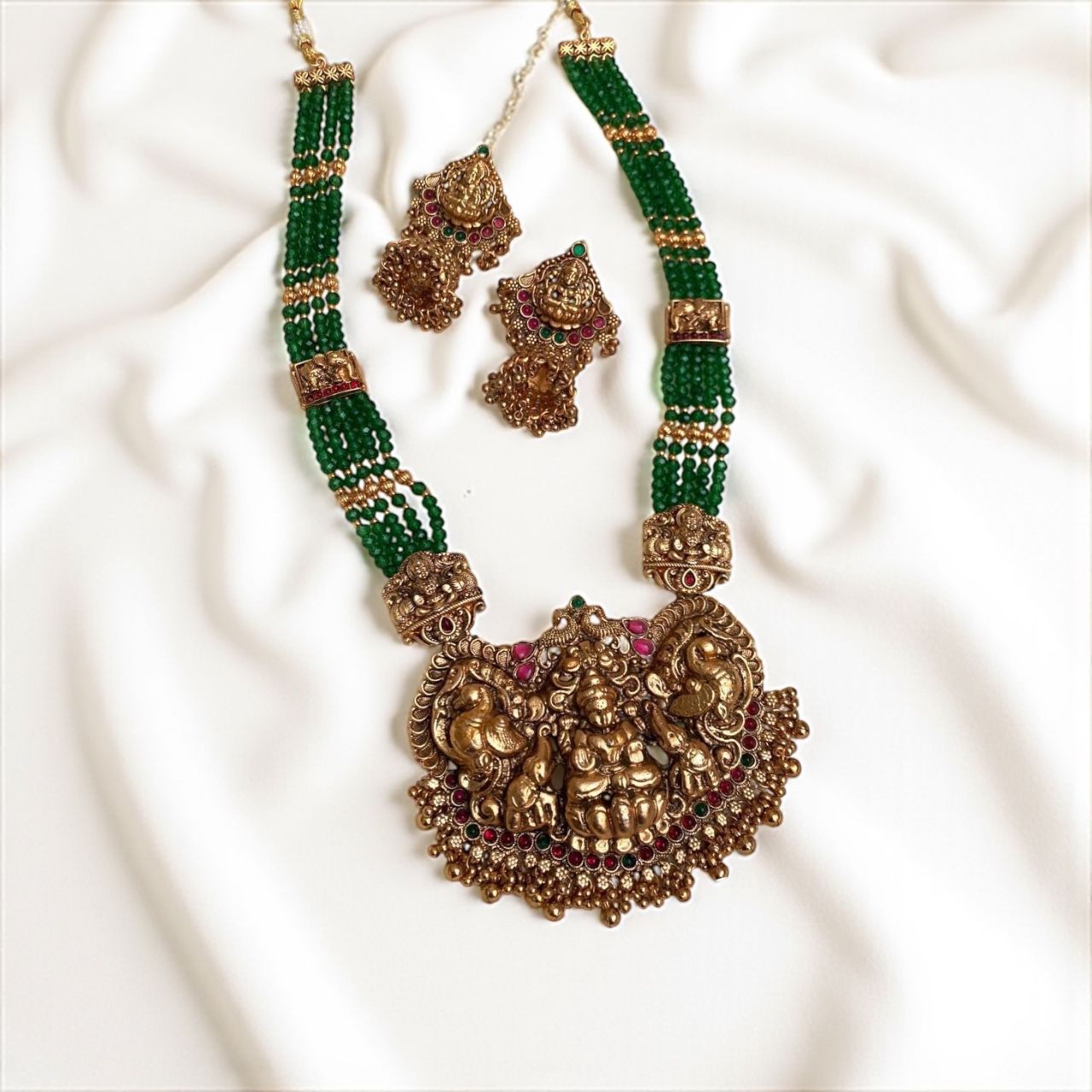 Elevate your traditional jewelry collection with the Lakshmika Motif Haram, expertly crafted to embody intricate artistry and cultural heritage. This exquisite haram showcases detailed motifs that blend classic design with refined elegance, making it perfect for special occasions. Designed for durability and comfortable wear, it enhances your ensemble while reflecting timeless craftsmanship.