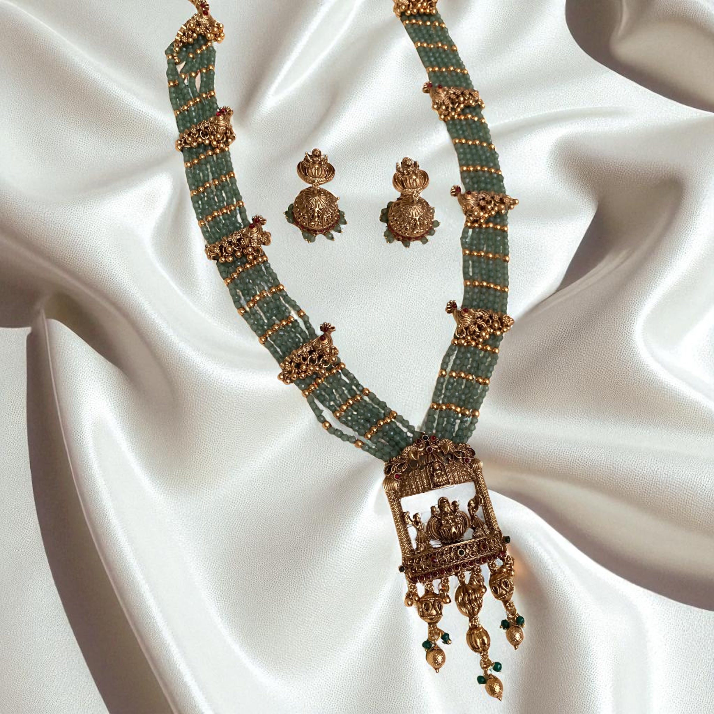 Elevate your traditional collection with this exquisite Temple Haram, meticulously crafted to embody timeless elegance. Featuring intricate temple-inspired motifs, this necklace showcases expert craftsmanship that highlights cultural heritage. Perfect for special occasions, it adds a regal touch to any attire while reflecting refined artistry and enduring beauty.